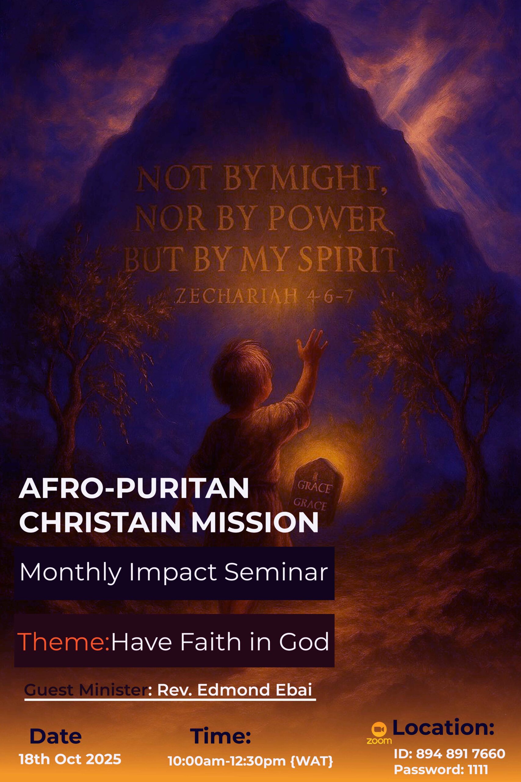 The Afro-Puritan Christian Mission invites you to the October Edition of our Monthly Impact Seminar, a special time of spiritual renewal, revelation, and empowerment through the Word and the Spirit.
